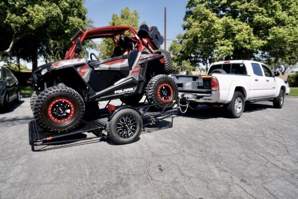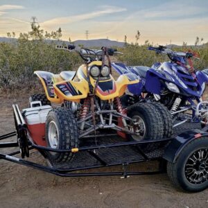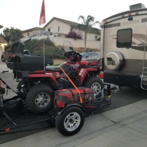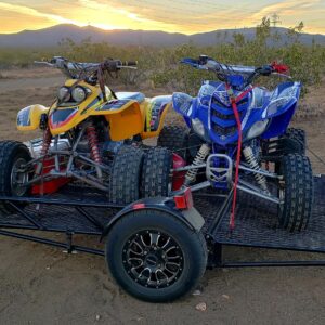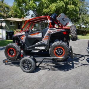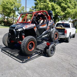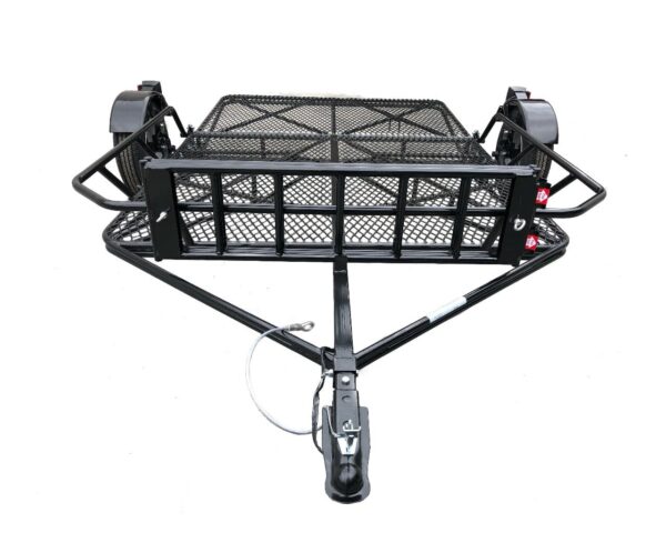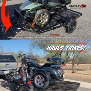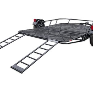 The 6’x9’ expanded metal platform ensures there is enough space for even the hardest-to-haul items, providing a wider and longer footprint than the average pickup truck or tow trailer in its price range. The foldable tailgate design makes the extra-long footprint no problem for storage. The low deck height and long ramps decrease the angle of approach when loading vehicles, making loading safer while maintaining a low center of gravity to increase towing stability. Made from tubular steel for enhanced strength and lightweight construction, the Endeavor Powersport Utility Trailer also features a heavy-duty steel mesh platform design that further adds to its lightweight, easy-to-fold design (meaning you can haul more and still stay within weight limits). Moreover, the mesh and cage design (as opposed to a solid platform and solid walls) also enable proper drainage in wet environments, preventing rust and keeping the loading platform from becoming slick. Both materials are powder coated to increase the trailer’s durability and resistance to cracks, rust, and damage from abrasion or chemical exposure, guaranteeing that this utility trailer will look as good as it performs for as long as you use it. And long-term, year-round use is what the Endeavor Powersport delivers. In one utility trailer, you get a work-horse trailer throughout the week and a toy hauler on the weekend. Take everything you want or need on one trailer, in one trip, with ease.