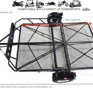 ● Maximum Extended Length (front of coupler to end of unfold tailgate): 151″