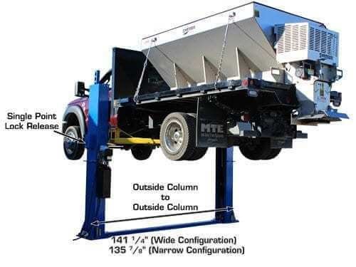 This lift is perfect for those commercial garages that want to lift heavier vehicles but have limited ceiling height. The Atlas® BP12000X can be installed at two different width settings to accommodate wider trucks or trailers and to facilitate “driving between” the lift columns.